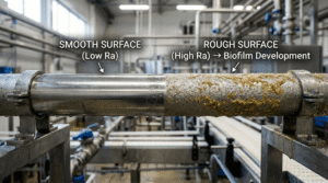 Rz: This is the maximum profile height (from the highest peak to the lowest valley). It is extremely important, because it is precisely the deep “craters” (even with a low average Ra) that can be a habitat for biofilm.